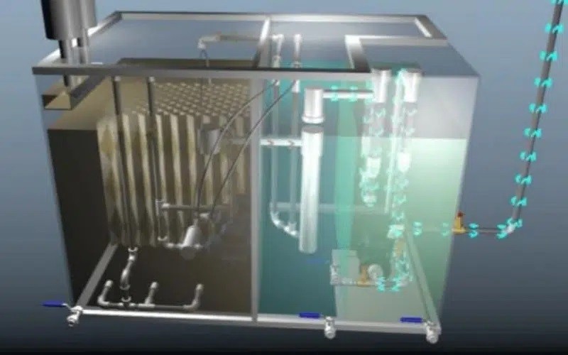 اجزا: دمندهها، رسانههای MBBR، واحدهای دوزینگ شیمیایی، محفظههای استریل و پمپهای تخلیه.